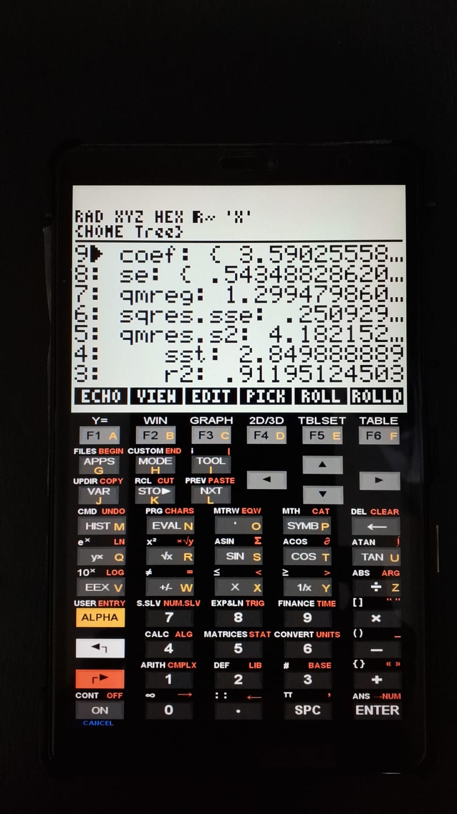 To run the example, the list must first be unpacked using the EVAL command. The multiple linear regression applied to the example dataset is illustrated below: