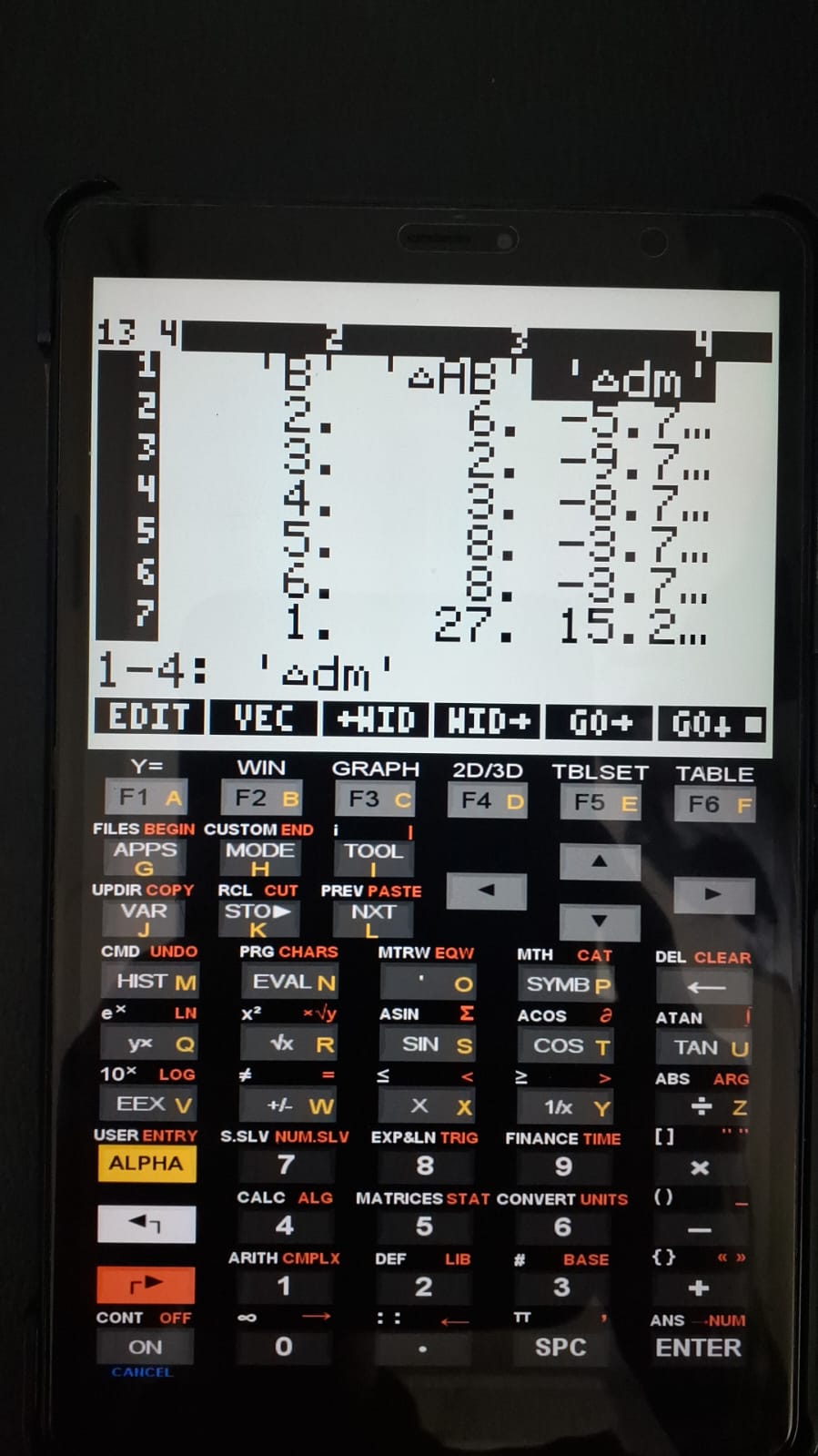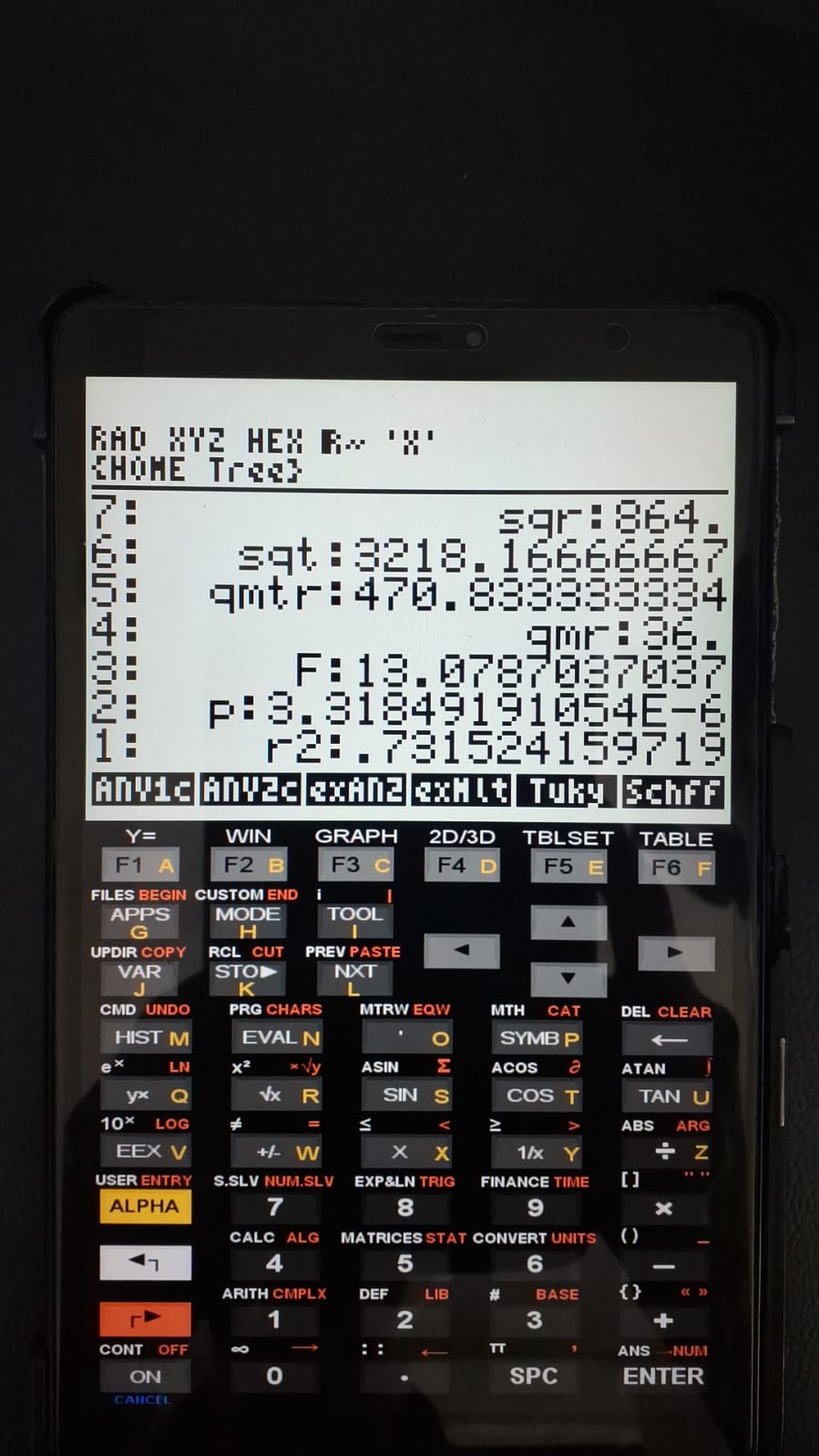 2. Run the program "1ANAVA1matrix" from the main page ("hp50");