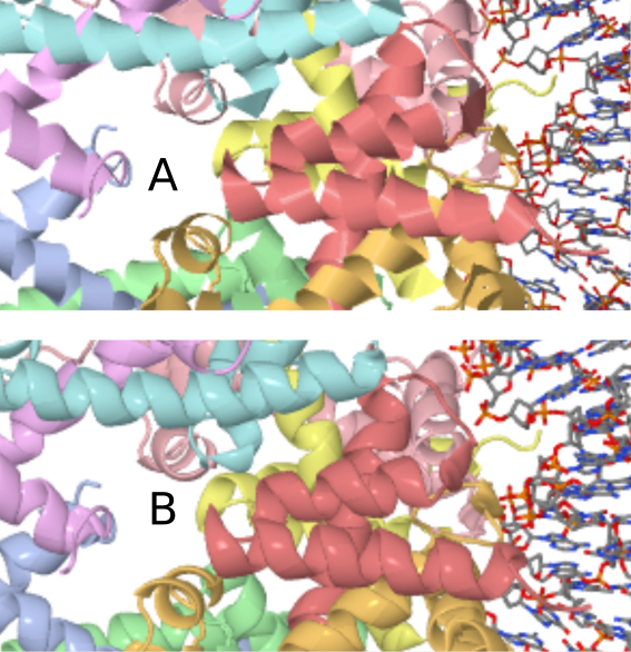 In this case, it is necessary to install the POV-ray program to convert the exported file into File->Export->Export POV-ray image. POV-ray is a multiplatform and freely distributable program that enables the rendering of images with three-dimensionality (ray tracing). As an example, see the Figure below for a comparison of an image file of a nucleoprotein complex exported as PNG and the same file, as POV-ray, both at 459x magnification.