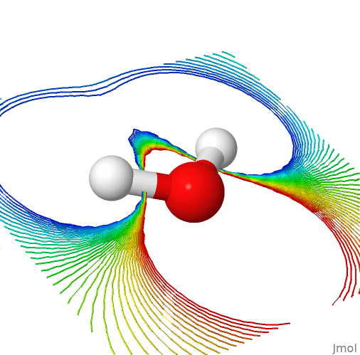 - electrostatic potential: isosurface resolution 6 molecular map mep (or via Menu --> Surfaces)