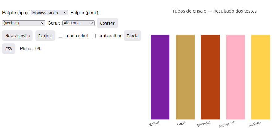 Discover the type of sample based on the color pattern of the tubes presented, providing a guess. The guess must be by type (in the “Guess (type)” menu - AA, chain, or mixture of AAs) and by profile (in the “Guess (profile)” menu - random, specific AA(s), or specific mixture);