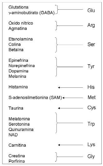 Figura 5.5: Alguns derivados de aminoácidos de importância fisiológica.