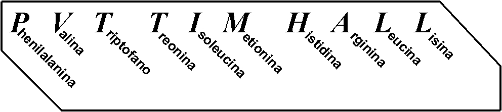 Em plantas, bactérias, e alguns animais, ocorre a síntese dos vinte aminoácidos principais, o que não existe em mamíferos, necessitando esses últimos da injesta de 10 deles (na criança, 8 no adulto). Esses chamados aminoácidos essenciais podem ser memorizados pela sigla PVT TIM HALL (Phe,Val,Thr, Trp,Ile,Met, His,Arg,Leu,Lys) tal como na Figura 5.4.