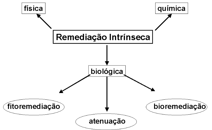 Um contaminante também pode ser adsorvido junto à partículas do solo. Todos esses processos reduzem a concentração do contaminante sem modificações em sua natureza química. Os mecanismos químicos de degradação de poluentes, por sua vez, constituem processos de transformação química daqueles em compostos inócuos ou de menor toxicidade ambiental. Paralelamente aos processos físico-químicos de limpeza ambiental, existem os processos biológicos. Estes, normalmente realizados por microorganismos ou por algumas espécies vegetais, valem-se da rede metabólica intrínseca dos organismos para transformações químicas catalisadas por algumas de suas enzimas constituintes.