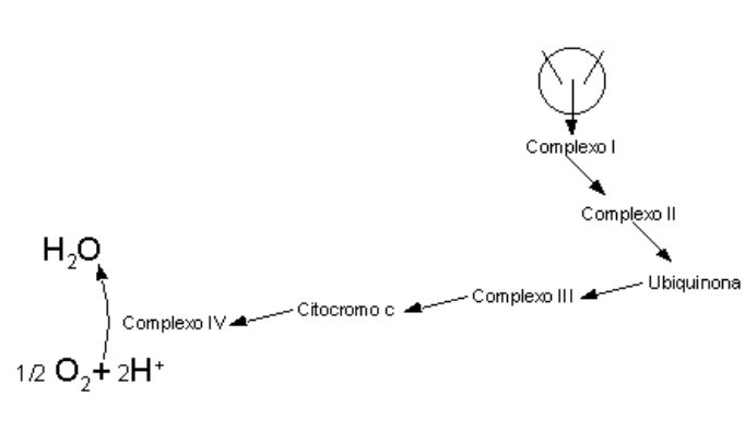 Em poucas palavras, os complexos I e II catalisam a transferência de elétrons até a ubiquinona, a partir de dois doadores de elétrons diferentes: NADH (complexo I) e succinato (complexo II). O complexo III transporta elétrons da ubiquinona até o citocromo c, e o complexo IV completa a sequência transferindo elétrons do citocromo c até o O2. A lógica da produção de ATP pela cadeia respiratória se baseia na hipótese quimiosmótica.
