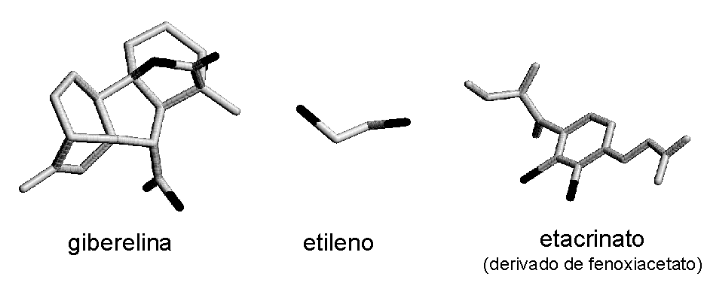 Algumas auxinas sintéticas descobertas podem também atuar no desenvolvimento vegetal, contudo sem a dinâmica de hormônios vegetais. Exemplos desses compostos são os ácidos naftaleno acético, indolbutírico e indolpropiônico, e o diclorofenoxiacético. Esse último, empregado na agricultura e pecuária, inibe o desenvolvimento de algumas pragas, favorecendo simultaneamente o crescimente de espécies úteis ao homem. Durante a Guerra do Vietnã ao final da décade de 60, o diclorofenoxiacetato foi largamente empregado como desfolhante de uso bélico. Entretanto, como o material se encontrava contaminado com o mutagêncio dioxina, acabou provocando distúrbios em grupos tanto de vietnamitas, como de aliados.