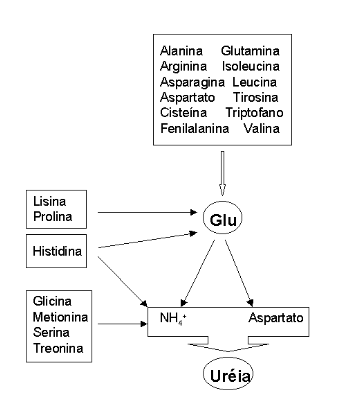 O nitrogênio não é armazenado no organismo, o que faz com que seu excesso seja imediatamente eliminado do mesmo. Esta eliminação envolve o metabolismo de aminoácidos, fundamental para a produção de precursores protéicos (síntese), fornecimento de nitrogênio (degradação), e síntese de metabólitos aminados (nucleotídios, creatina, histamina, melanina). É dividido em duas grandes etapas, quais sejam, o metabolismo da parte aminada e do esqueleto carbônico dos aminoácidos. Assim, a amônia liberada de um aminoácido pode ser excretada, convertida em uréia (maior parte), ou aproveitada para a síntese de outro aminoácido, ao passo que seu esqueleto carbônico pode ser utilizado para a produção de glicose, ou para o metabolismo intermediário.