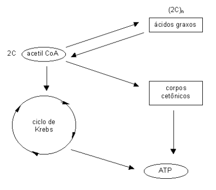 - Saber que o acetil CoA é precursor de corpos cetônicos, quer pelo excesso, quer pela beta-oxidação de ácidos graxos.