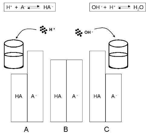No plasma sanguíneo, variações mínimas além da faixa de pH fisiológico de 7,3-7,4 podem resultar em paralisação de sistemas enzimáticos com danos celulares irreparáveis, levando à morte em casos extremos (cetoacidose diabética, hiperamonemia adquirida), quando não houver mecanismos de compensação para essas variações. São vários os compartimentos de pH existentes e atividade protéica/enzimática correspondentes. Assim, pepsina estomacal atua sob um pH ótimo de 2, tripsina pancreática em pH 7, e fosfatase alcalina em pH 8. Um sistema tampão funciona como um reservatório de ácidos com bases conjugadas em concentrações aproximadamente iguais, que neutralizam limitadamente a adição de um álcali ou de um ácido à solução.