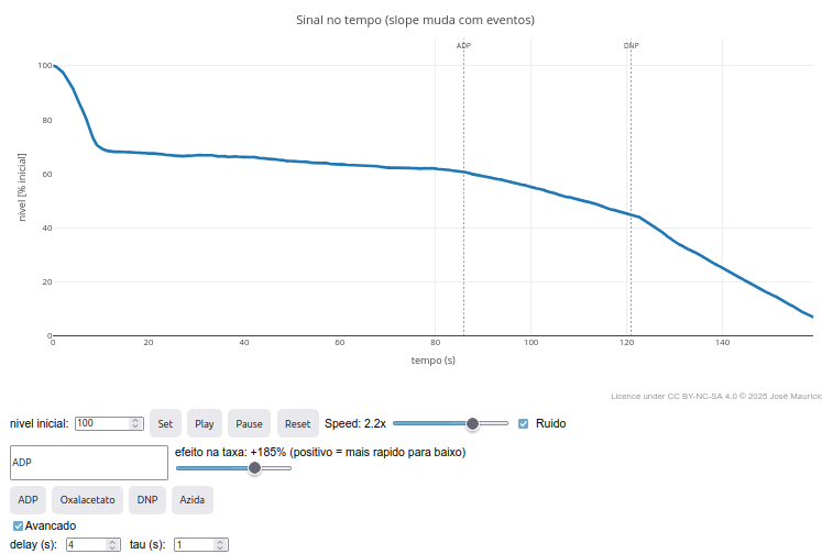 O simulador também inclui o impacto de modificadores bioquímicos e variações experimentais como a maturação do biofilme, a depleção de substrato, e overshooting observados em condições reais de operação.