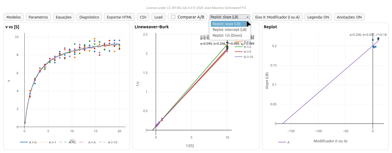 A simulação que segue visa oferecer uma equação geral para estudos de inibição enzimática, que contemple os modelos competitivo, incompetitivo e competitivo (puro ou misto), também permitindo o estudo de catálise enzimática na ausência de inibidor.