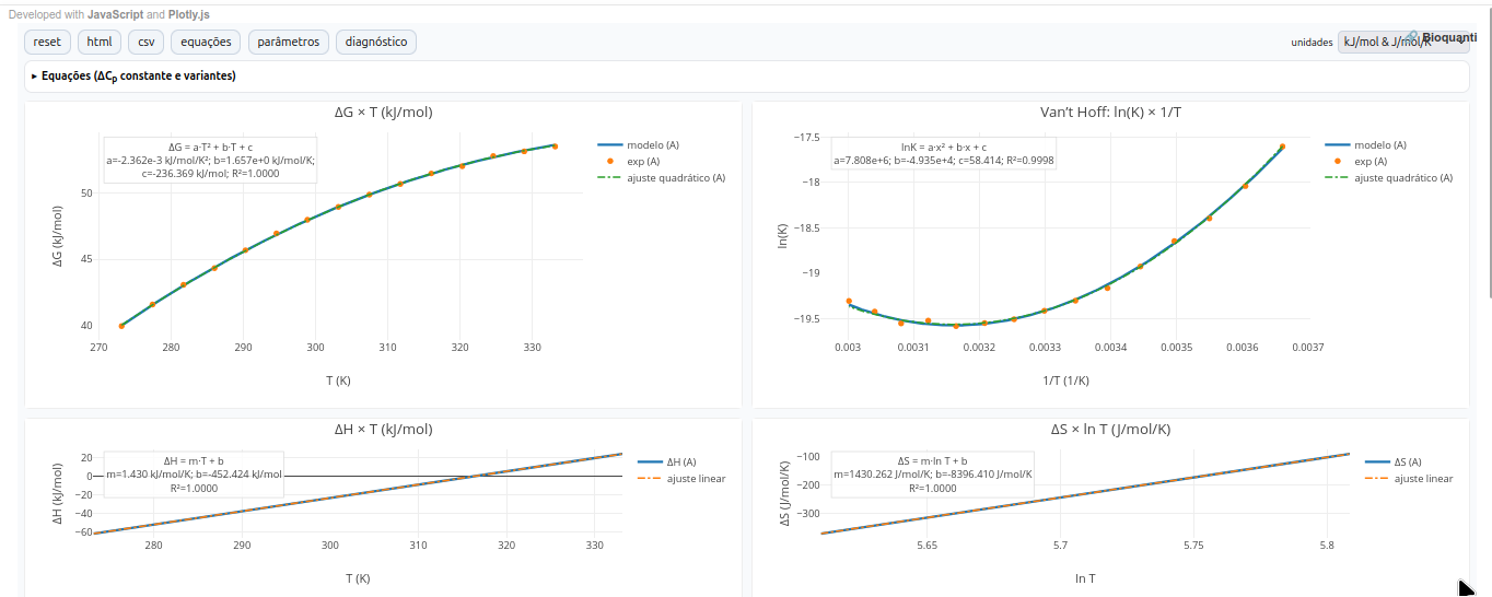2. Explore as relações de Eyring e de Arrhenius para se obter ΔH‡, ΔS‡, ΔG‡ e Ea, a partir de slopes e interceptos dos gráficos;