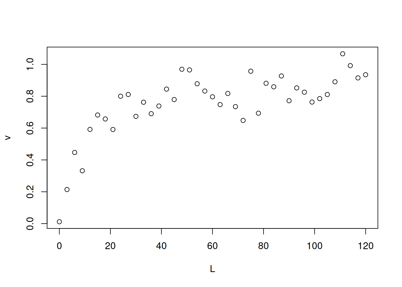 v <- (L * n)/(Kd + L) + rnorm(40, 0, 0.1)