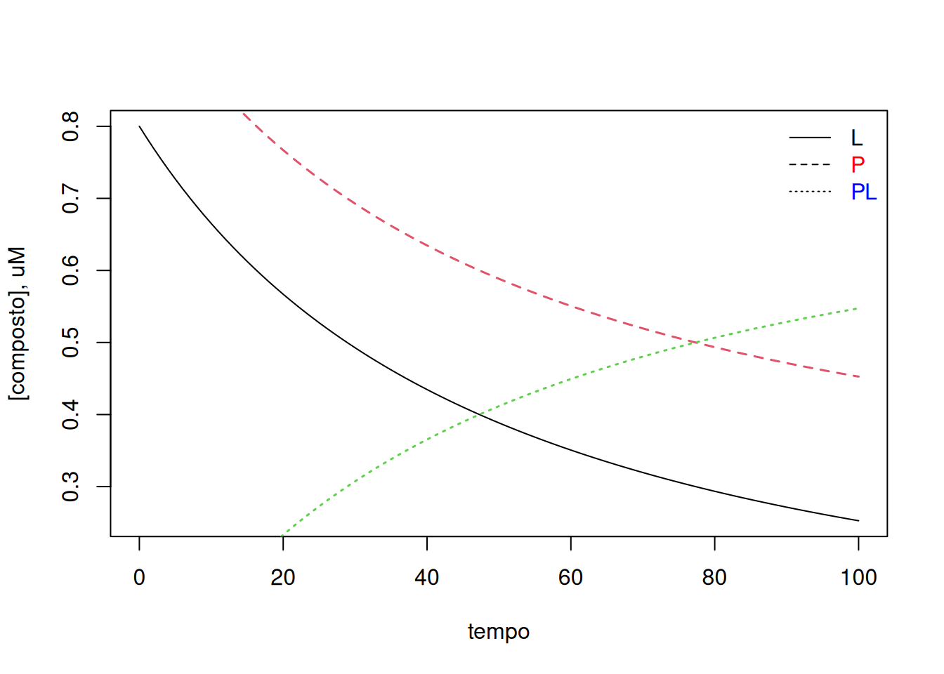 val.inic <- c(L = 0.8, P = 1, PL = 0)  # valores iniciais, uM